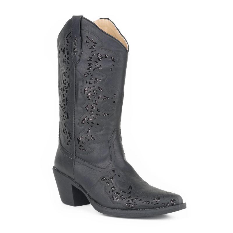 - ROPER | WOMEN'S FASHION COWBOY BOOT VINTAGE TAN FAUX LEATHER AND ALL OVER EMBROIDERY-TAN | STYLISH OUTLET