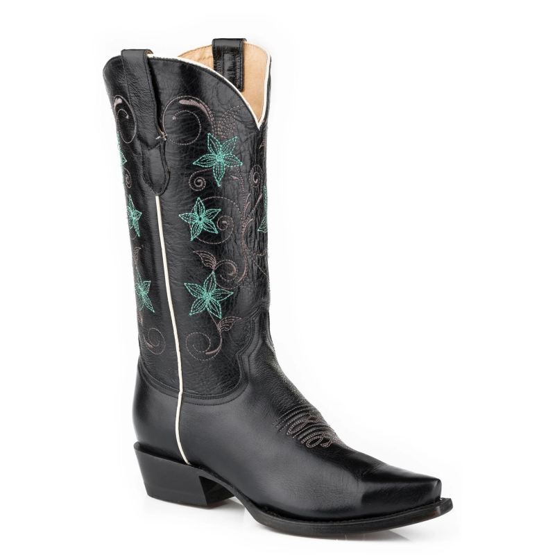 - ROPER | WOMEN'S VINTAGE TAN VAMP FLEXTRA BOOT WITH VINTAGE WHITE ARROW EMBROIDERED LEATHER SHAFT-TAN | STYLISH OUTLET