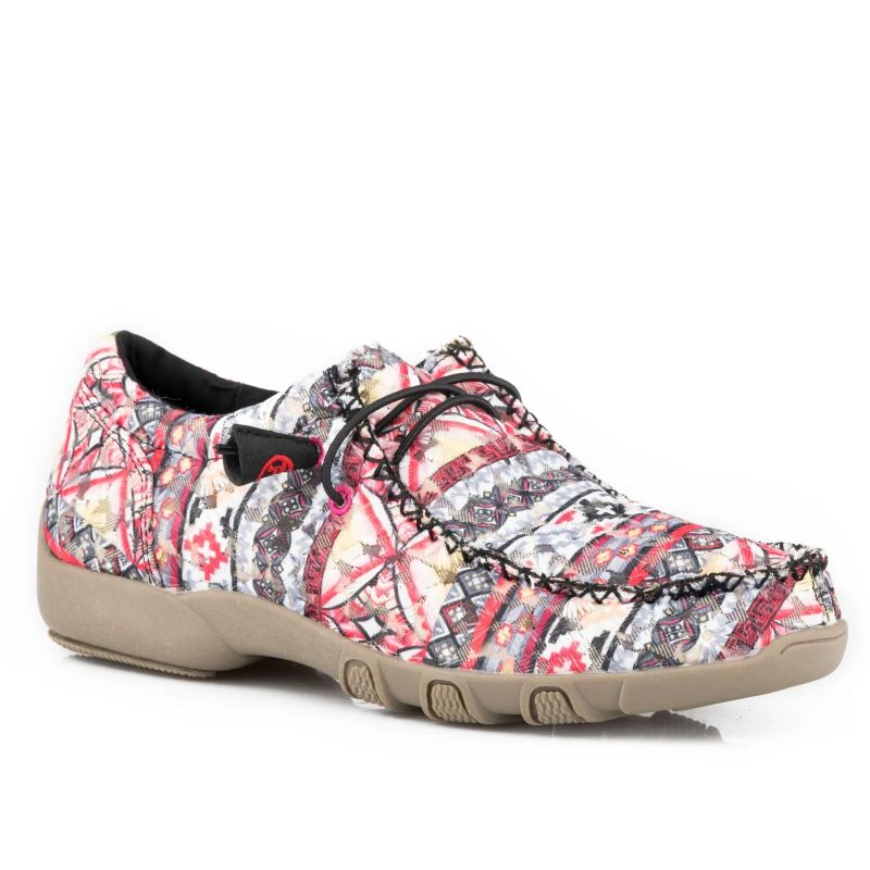 - ROPER | WOMEN'S LACE UP MOCCASIN TAN BURNISHED LEATHER WITH HANDTOOLED AZTEC VAMP-TAN | STYLISH OUTLET
