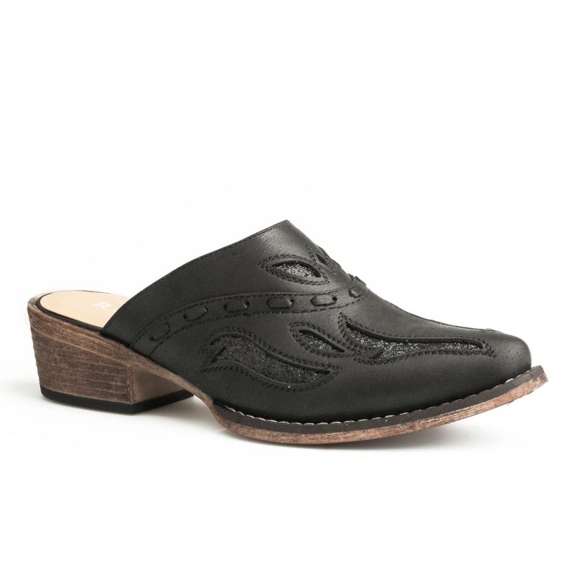 - ROPER | WOMEN'S FASHION MULE BLACK FAUX LEATHER WITH UNDERLAY-BLACK | STYLISH OUTLET