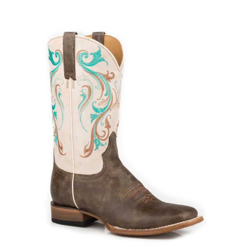- ROPER | WOMEN'S LEATHER COWBOY BOOT BURNISHED TAN WITH ALL OVER SOUTHWEST EMBROIDERY-TAN | STYLISH OUTLET