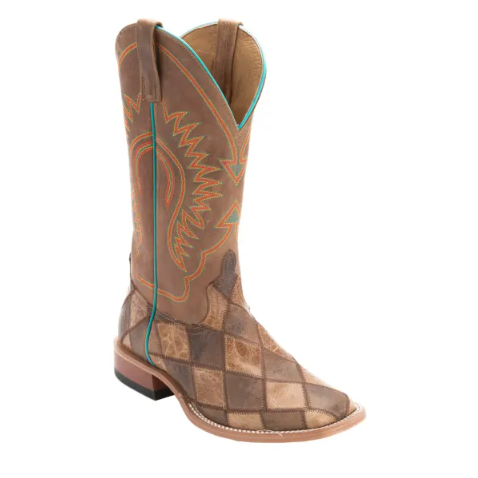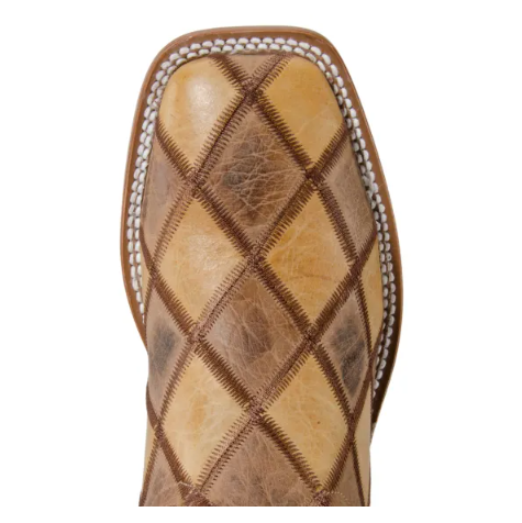 - Special Offer Anderson Bean Men's Horse Power Distressed Brown with Moka Zigzag Patchwork Square Toe Cowboy Boots-BROWN