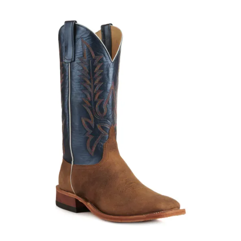 These Anderson Bean Men's Sand Elk and Blue Wide Square Toe Cowboy Boots are the real deal. The boots are made in Texas, by hand, with the finest materials available. The boots are all-leather, for comfort and style, and are fitted with a hybrid outsole for durability.