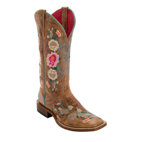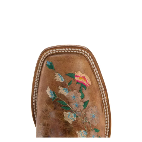 - Special Offer Anderson Bean Women's Macie Bean Antiqued Honey Brown with Rose Garden Embroidery Square Toe Cowboy Boots-TAN