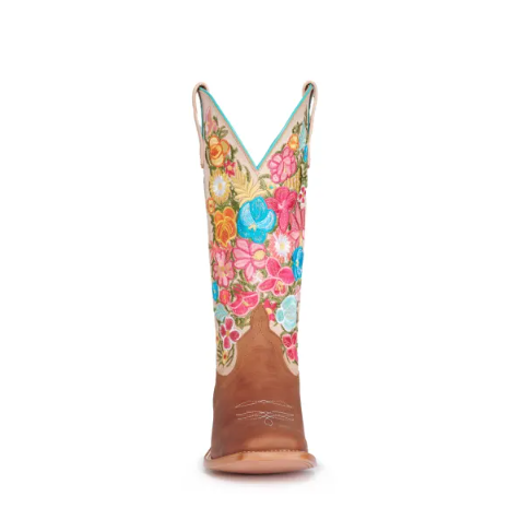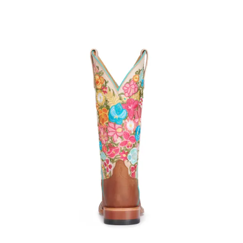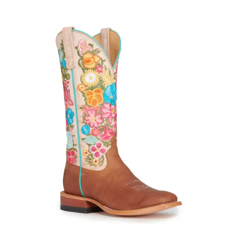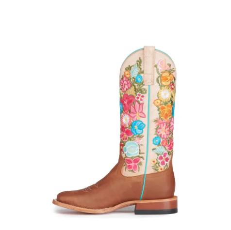- Special Offer Anderson Bean Women's Macie Bean Antiqued Honey Brown with Rose Garden Embroidery Square Toe Cowboy Boots-TAN