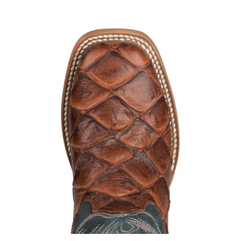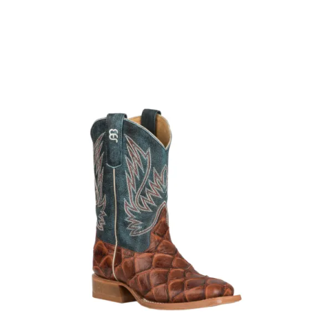 - Special Offer Anderson Bean | Youth Horse Power Cognac Fish Print and Green Wide Square Toe Western Boot-COGNAC