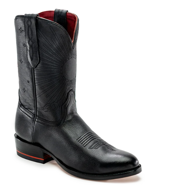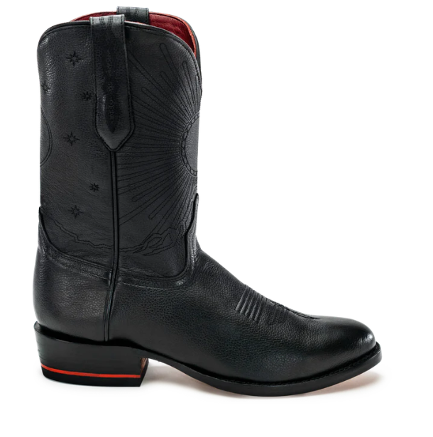 The No. 1 is crafted from Chisos heritage cowhide, available in either our speckled magic black, gorgeous brushed brown, or roughout. The artwork shows the sun and stars over the Chisos Mountains in Big Bend National Park and our signature red heel stripe completes the piece.