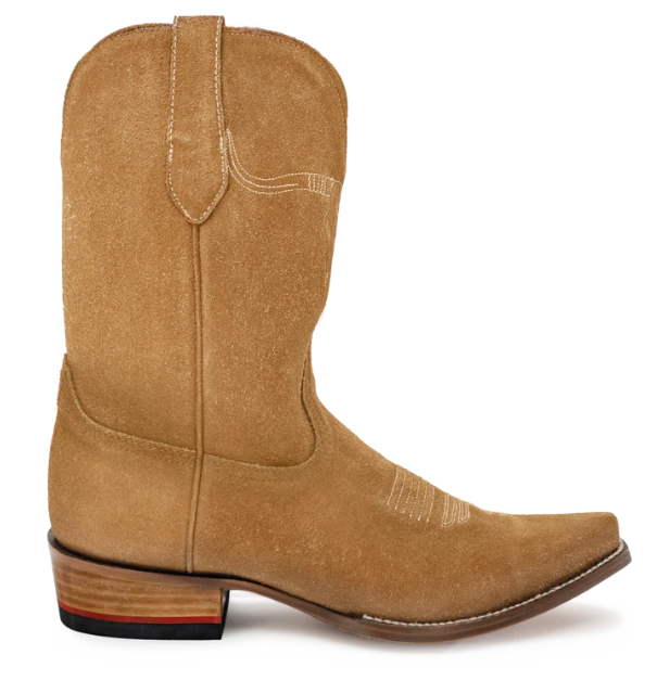 The tan version ain't suede-our roughout is made by turning a full grain hide inside-out. It's our strongest and most comfortable cowhide leather.