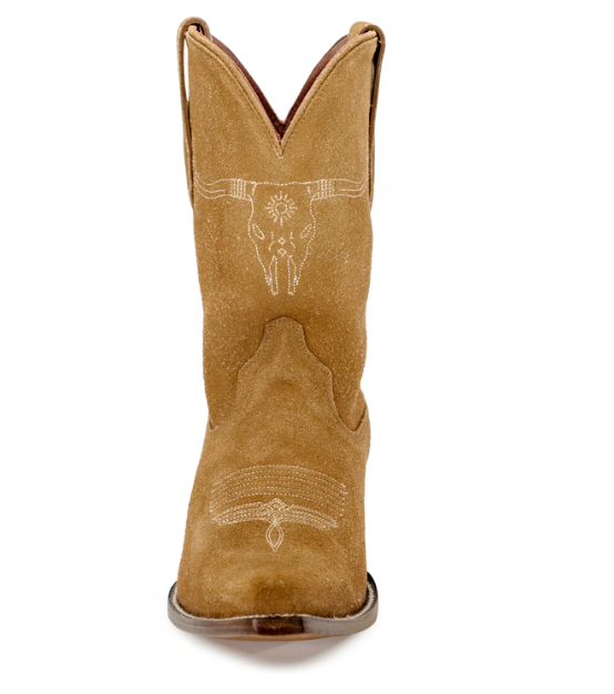 The No. 5 pays tribute to the Texas Longhorn and those great herds that defined the old west. Horns that reach the entire width of the boot dominate the embroidery. Both our magic black and roughout leathers provide full grain strength to back up the loud snip toe.