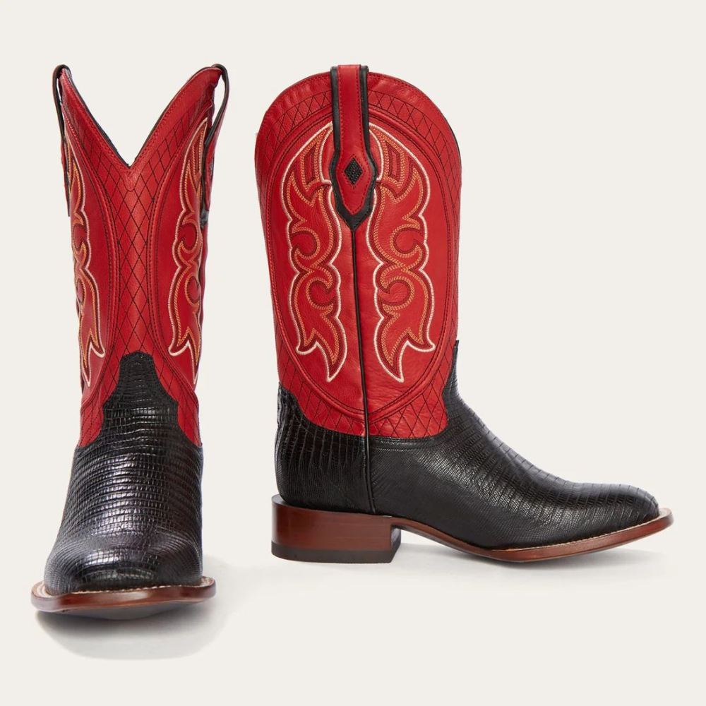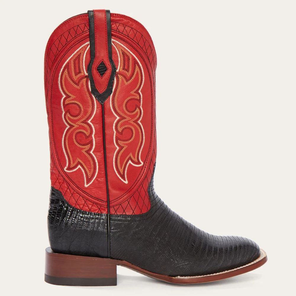 - STETSON MEN'S ARLINGTON BLACK TEJU RED MATTE COWBOY BOOT-Black | ONLINE OUTLET