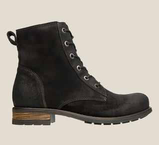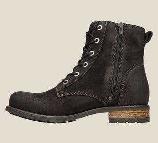This leather lace up boot features adjustability and an inside zipper for accessibility . Gorgeous leather adds to the boot's look, while faux fur provides a wonderful feel inside. Our dual density polyurethane removable footbed delivers comfort with arch and metatarsal support.