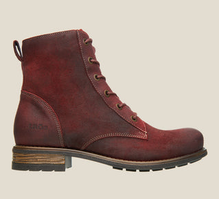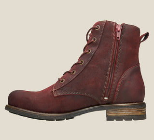 This leather lace up boot features adjustability and an inside zipper for accessibility . Gorgeous leather adds to the boot's look, while faux fur provides a wonderful feel inside. Our dual density polyurethane removable footbed delivers comfort with arch and metatarsal support.