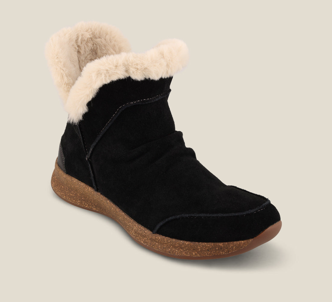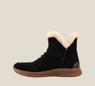 A new trainer-inspired construction fused with a casual pull on cozy bootie equals the best of both worlds! The upper is a high quality water resistant suede with slight pleating at the vamp, lined with luxurious faux fur, encompassing you in rich comfort, you won't want to take these off! The supportive polyurethane footbed has exceptional arch & metatarsal support, covered in premium microfiber for all day comfort. A rubber outsole with a unique honeycomb design is not only flexible, but durable for all day wear.
