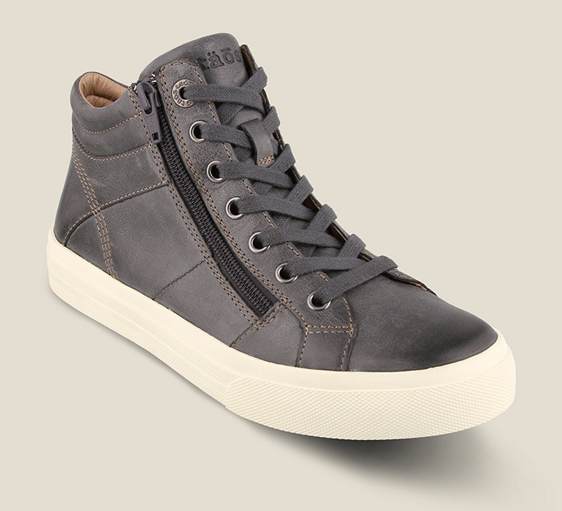 Winner is a high top, lace up leather sneaker. Featuring an Active Curves & Pods removable footbed, and flexible, durable rubber outsoles. While also having a thicker and higher sidewall for a youthful look, we also added an outside zipper for easier accessibility.