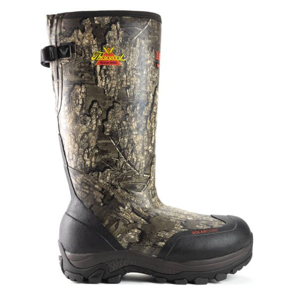 Whether you're hunting or working outdoors, you'll stay warmer, longer with Infinity FD rubber boots with RealTree® TIMBER® camouflage and 1600g 3M™ Thinsulate™ insulation with SOLARCORE®. These durable boots are made with scent-free, waterproof rubber and include an anti-microbial wicking liner to keep your feet dry and comfortable all day. The multi-traction Infinity FD Flex-drive anti-fatigue system returns energy with every step, propelling you forward even in the most challenging environments. With 1600g 3M™ Thinsulate™ insulation and NASA-inspired SOLARCORE® aerogel lining, these boots retain more heat with less bulk. Your feet will stay warm and dry as you pursue your goals.