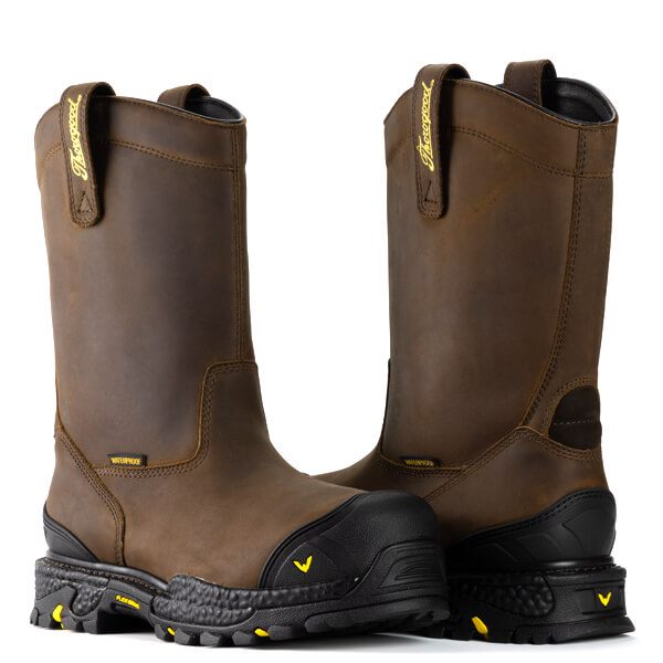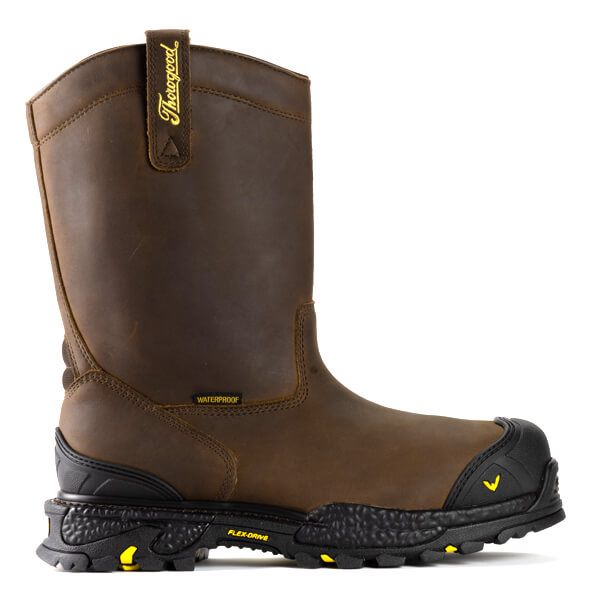 Whether the job feels like it takes forever or you're forever stepping into something you'd rather not, you need a tough, waterproof work boot that will keep your feet comfortable, just about forever. These 11-inch pull-on Wellington boots keep your feet protected, wherever the site and whatever the job. Our Infinity FD series combines some of the newest technology with traditional Thorogood reliability, giving you amazing performance that doesn't compromise on comfort. This Wellington work boot includes patent-pending FLEX-DRIVE rear-welt construction, which gives you better flexibility with superior durability. Our proprietary anti-fatigue high rebound sole absorbs shock and returns energy with each step, keeping you moving forward so that your workday doesn't feel like it lasts forever.