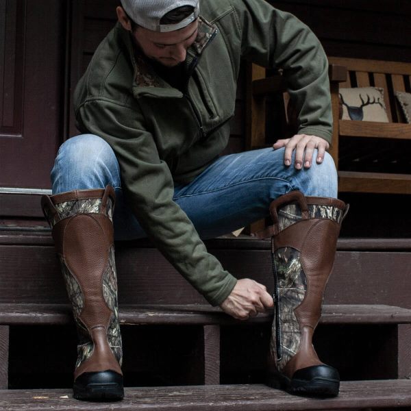 A southern hunter has one need a northern hunter might not ever consider -protection from snake bites. That's why we put SnakeGuard Extreme material over these 17" side-zip outdoor boots to give you added protection from snakes. The Z-Trac slip-resistant rubber outsole with gripping pad and rugged lug provide superior traction, keeping you on your feet no matter the terrain. The EVA/polyurethane cushion midsole absorbs the shock of every step so you can hunt all day without fatigue, while the removable dual-density polyurethane footbed will cradle your foot in comfort. These tough snake boots feature Mossy Oak Break-up Country camouflage and will stay good-looking longer with 3M Scotchgard Protection. And that's a good thing, since they'll last you for years to come.