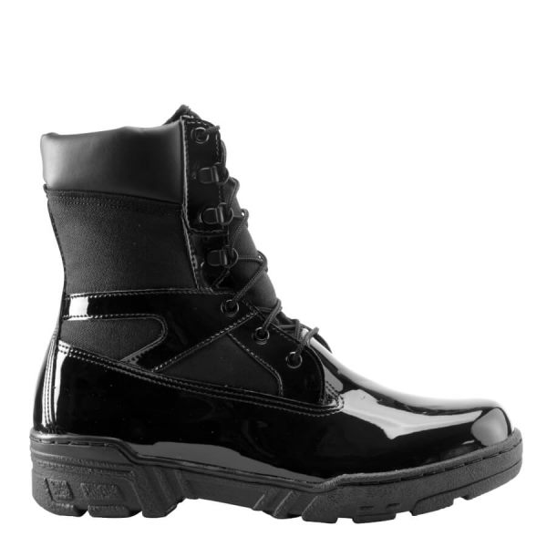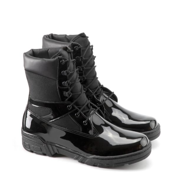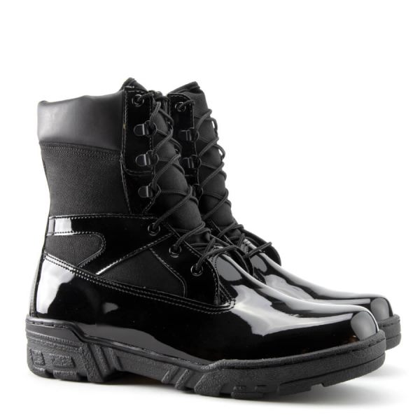 When the job is tough but you still have to look good, count on these glossy black poromeric and abrasion-resistant Cordura nylon Commando Plus boots. Berry Compliant, these boots boast a Vibram Enforcer slip- and abrasion-resisting rubber outsole for total control on any surface. Cement construction with side wall stitch gives these boots an athletic feel. The removable Poly-Pillow Footpacer insole reduces fatigue and provides excellent shock absorption while protecting against moisture, bacteria, and odor.