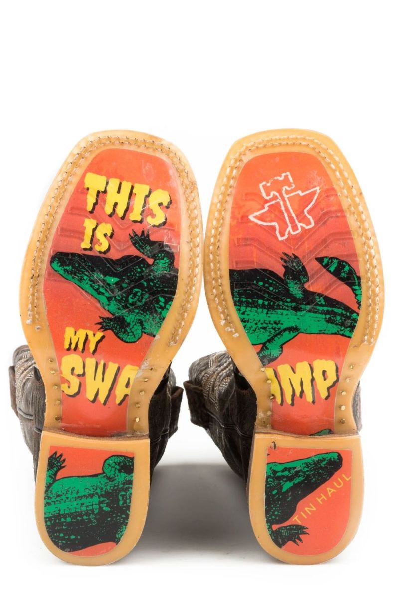 - TIN HAUL LITTLE BOYS SWAMP CHOMP WITH THIS IS MY SWAMP SOLE EMBOSSED CAIMAN WITH EMBOIDERED BROWN UPPER-BROWN STYLISH OUTLET