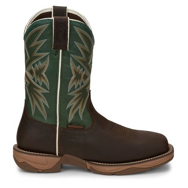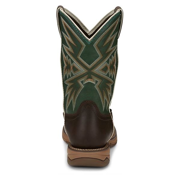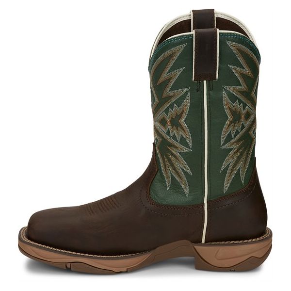 It's crafted with a handsome shamrock green cowhide leather shaft with dynamic stitching that sets off its buffalo leather foot. This 11" tall wide square toe steel toe boot also features a rubber outsole for durability and traction and it's equipped for comfort with an orthotic insole inside.