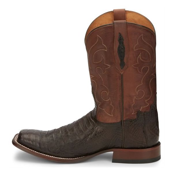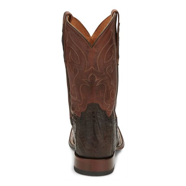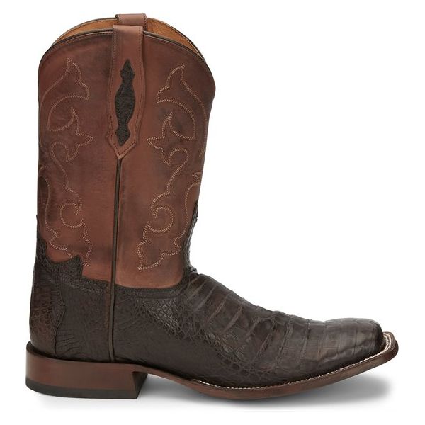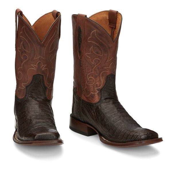 The 11" Canyon Boot in Brown from our 1911 Collection is crafted with a burnished tan leather upper and a burnished caiman belly tail foot in a deep brown coffee tone. Featuring our cushioned comfort insole, it's finished with a channel square toe and western walking heel.