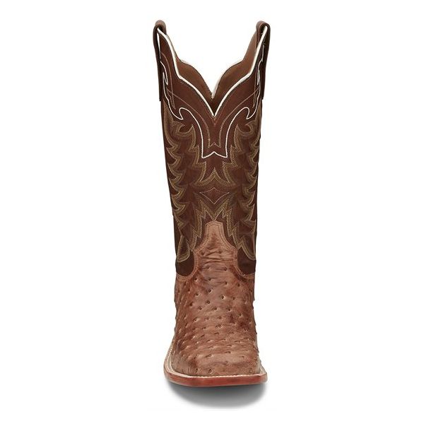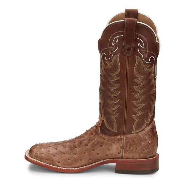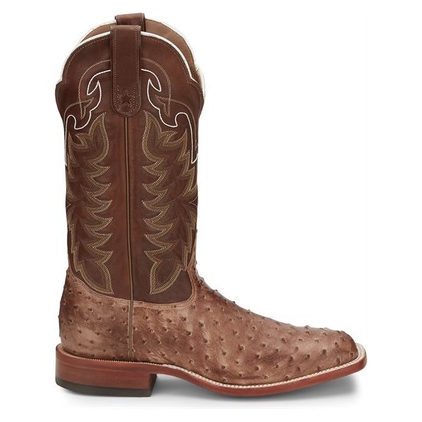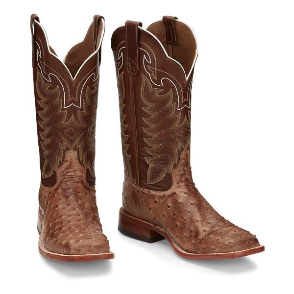 The striking white trim around the scalloped collar and pull straps and star cut out are subtle details that set this boot apart. The distressed golden brown full quill ostrich foot sport a square toe and unit heel for a relaxed fit in the stirrup. The Lama Comfort Technology combines flexibility, stability and cushioning for major comfort and the double stitch welt provides durability.