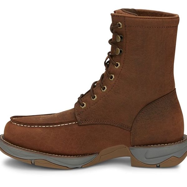 The waterproof Sierra Badlands leather gives it a rugged and timeless appeal, and the steel toe inside the mocc toe profile protects the foot throughout a long day of work. This boot is electrical hazard rated and furnished with a dual density orthotic insole.