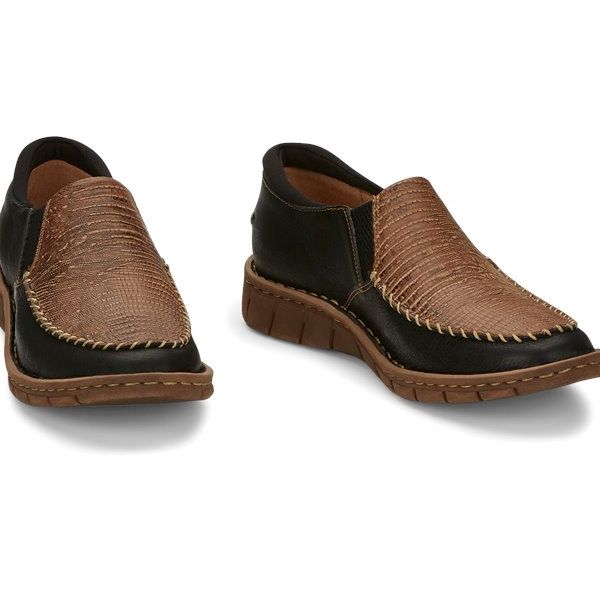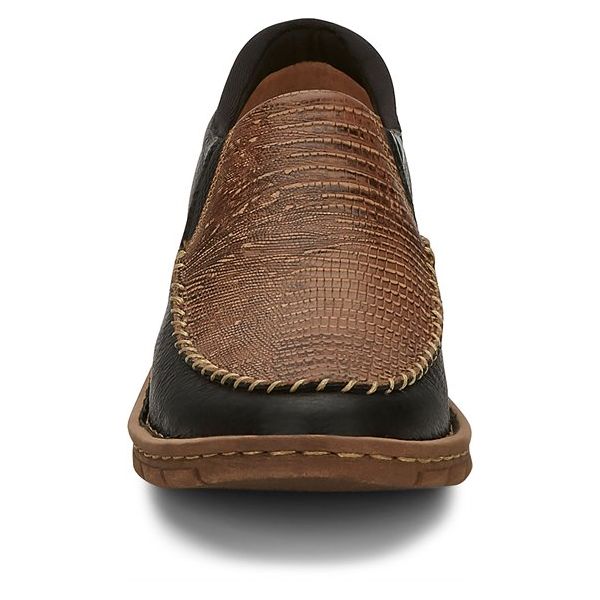 Expert moc toe stitching highlights the beautiful textured print accent, and the stretch goring and cushioned insole ensure a wonderful all-day feel. The Tony Lama Casuals collection features sophisticated styling, crafted with the Opanka method, one of the world's oldest shoe construction techniques, for a lightweight feel with uncompromising comfort.