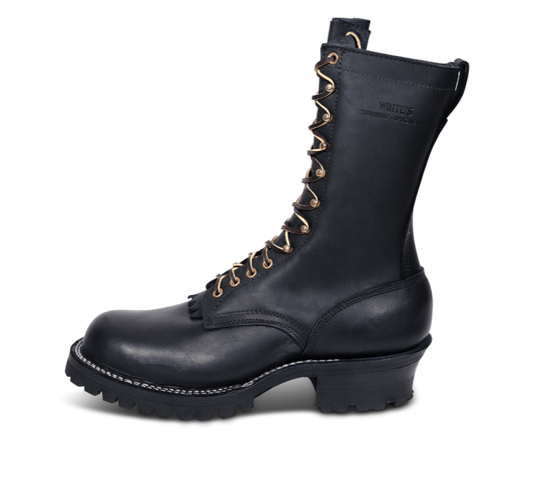 - White's Boots | Men's Block Heel Logger-Black Rough Cut | Free Shipping