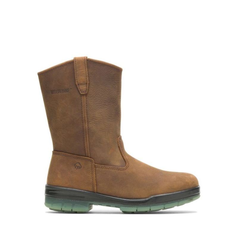 - WOLVERINE | LATEST MEN'S FLOORHAND WATERPROOF 10" WELLINGTON-Dark Brown