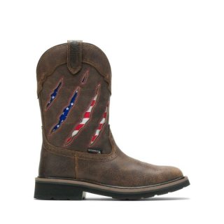 - WOLVERINE | LATEST MEN'S RANCHER CLAW STEEL TOE WELLINGTON-Brown/Flag