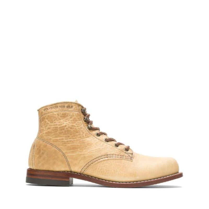 The 1000 Mile Plain-Toe Original boot is recreated from an archival Wolverine pattern and is America's original work boot. Designed in Rockford, Michigan, and handcrafted in the USA, each pair is made with meticulous attention to detail and built to last. Time-tested Goodyear Welt construction allows the boots to be resoled for years of wear, and innovative olive tanned leather from Horween, this new way of tanning leathers with biodegradable elements results in a beautiful, natural finish.
