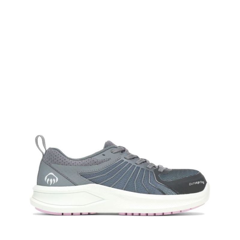 The Wolverine Bolt is the first-ever safety toe athletic shoe with the comfort of Wolverine DuraShocks and Wolverine DuraSpring cushioning, making it the most comfortable safety toe shoe, guaranteed. The outsole is specifically tuned for slip resistance, with extended pads to increase surface contact with the ground. The pads also feature an angled pattern to channel away liquids and contaminants. Wolverine DuraShocks technology absorbs shock and returns energy for all-day comfort. DuraSpring cushioning provides long-lasting, dynamic cushioning, retaining more than 40% rebound than standard EVA.