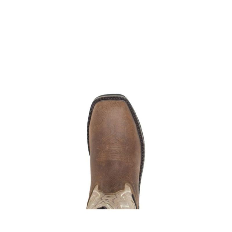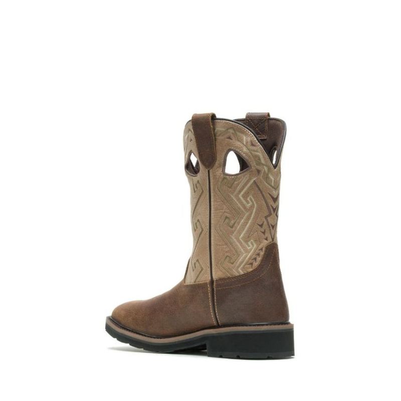 The Rancher wellington features a square-toe design and easy-on easy-off style for comfortable and convenient everyday wear with steel-toe protection.