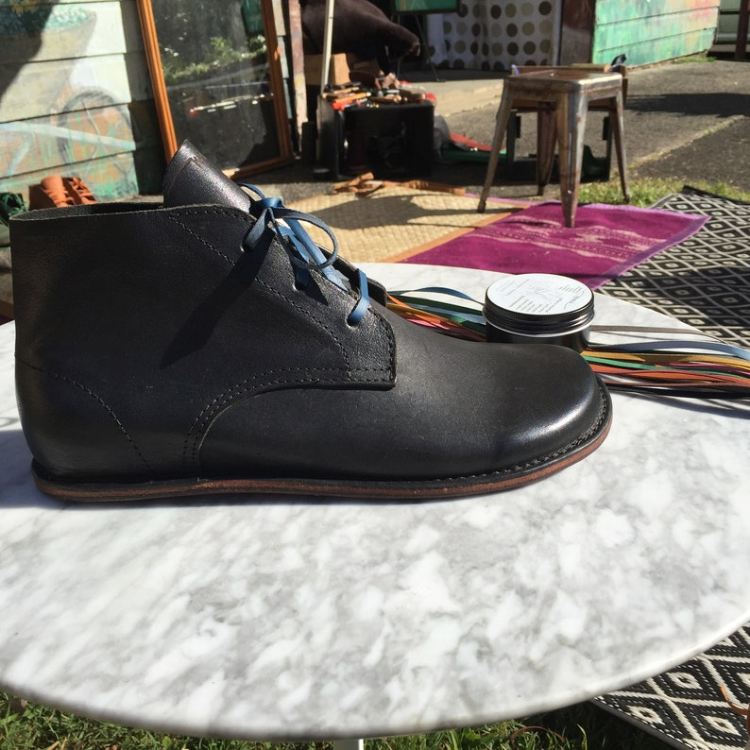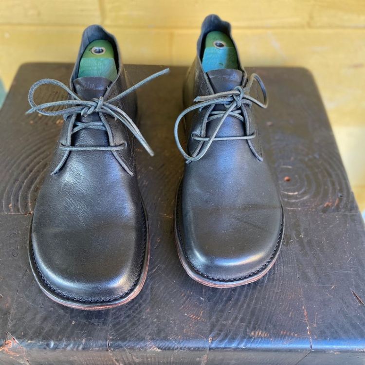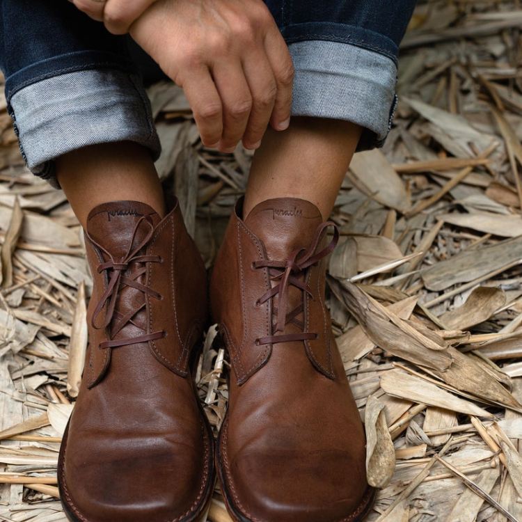 Genuine leather, cotton lining, stitched and glued rubber sole. Closure at the back of the ankle with 3 Kohaze hooks.