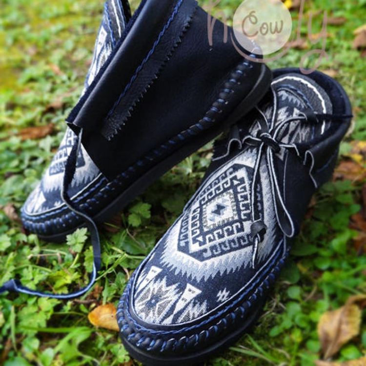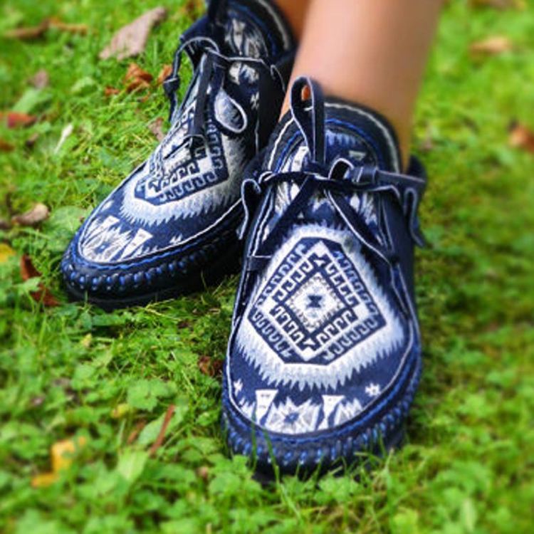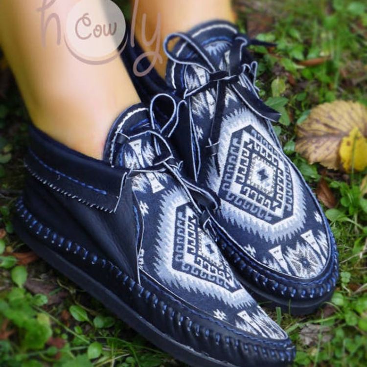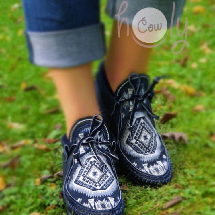 - Women's Blue Leather Moccasins With Native American Tribal Fabric | Save More