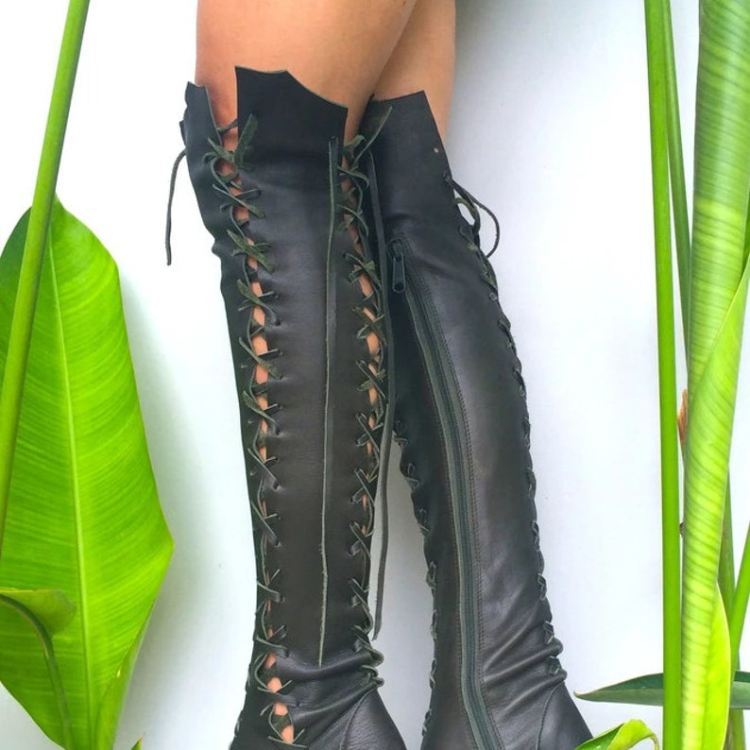 - Women's Y2k Vintage Black Leather Knee High Boots by Born Size | Save More