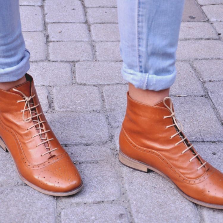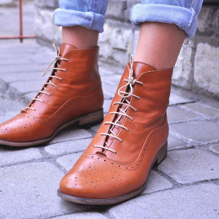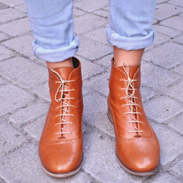 - Women's Vintage Ankle Boots Handmade Ankle Boots Chunky Heel Glossy | Save More