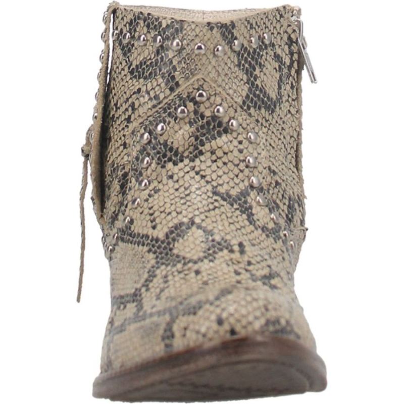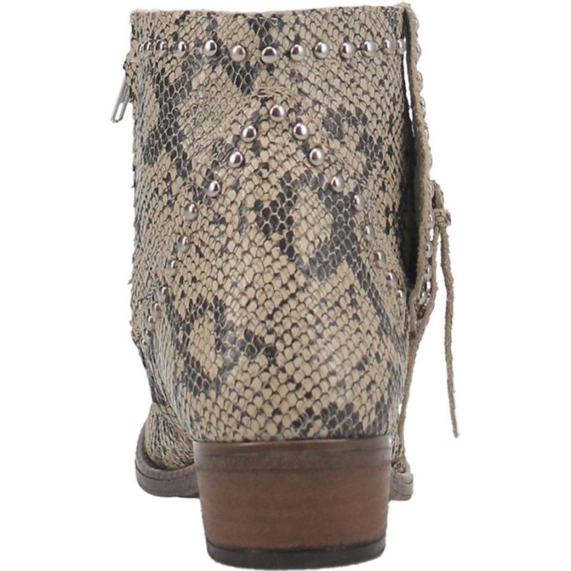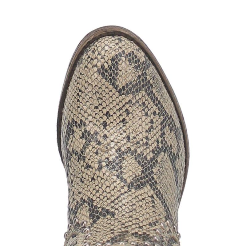 Snake print is one of the season's hottest trends. #Clementine combines snake in a fashion bootie with long pull strap and added tassel detail. Inside zipper for function and style.