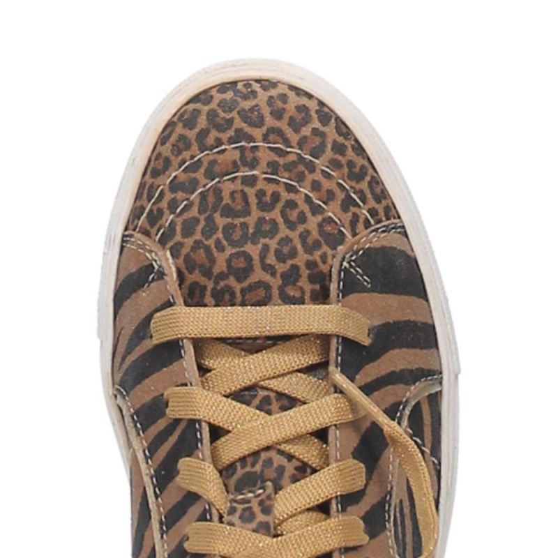 Welcome to the #Concrete Jungle. This fun sneaker combines zebra and leopard print leather with metallic fabric laces. Athletic rubber outsole. #funinthejungle #dingo1969