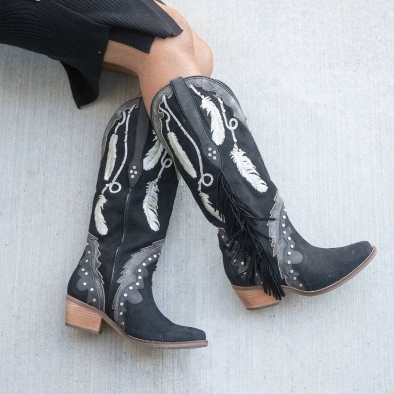 The #Dream Catcher is the boot of your dreams. Indescribable beauty from the rich leather with soft feather embroidery to the sweet fringe and studded overlays. Classic yet unique, fun and beautiful, all in one boot, just for you.#DreamCatcher #MustHave