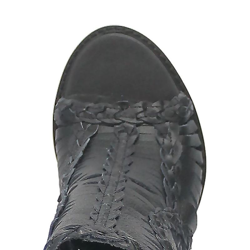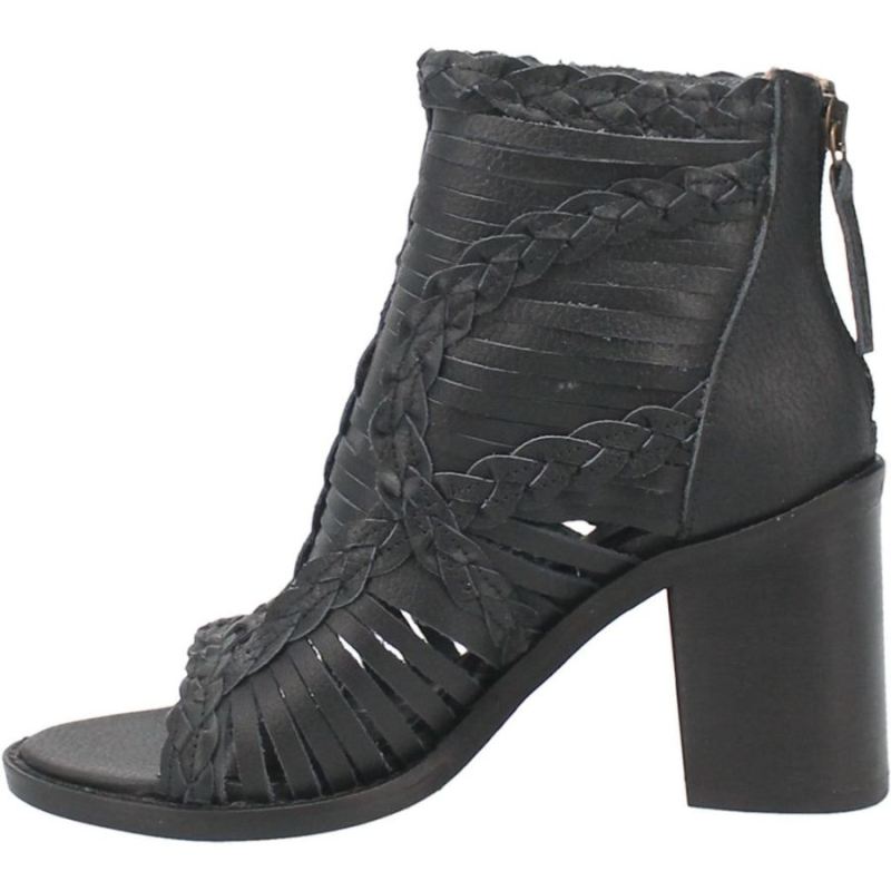 Wrap your foot in soft leather strips from toe to ankle, accented by woven braid overlays. The Dingo1969 #Jeezy features a chunky heel, back zipper and open toe. Just what your closet is missing.