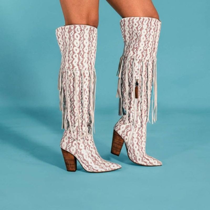 Unforgettable style. Unforgettable nights. Make a statement in #Kitty Kat by Dingo1969. All over snake print leather boot with hand tied knot fringe and tall fashion heel to draw even more attention to your legs. Inside zipper gives better fit. Glam and sexy. Amp up your style. COMING IN MAY #kittykat #attitude #oneandonlybootforme
