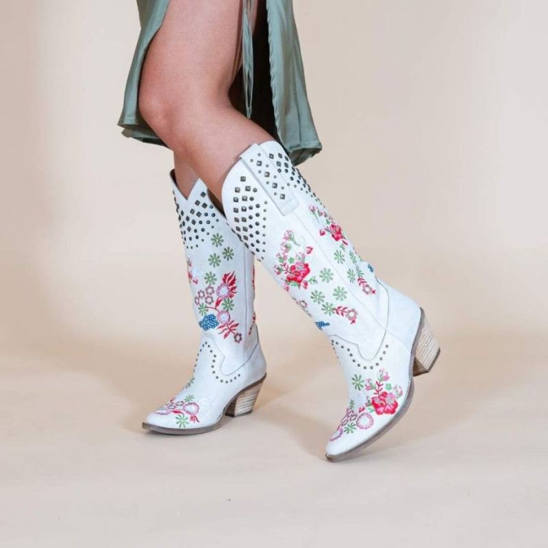 - WOMEN'S DINGO FULL BLOOM LEATHER BOOT-WHITE | FREE SHIPPING