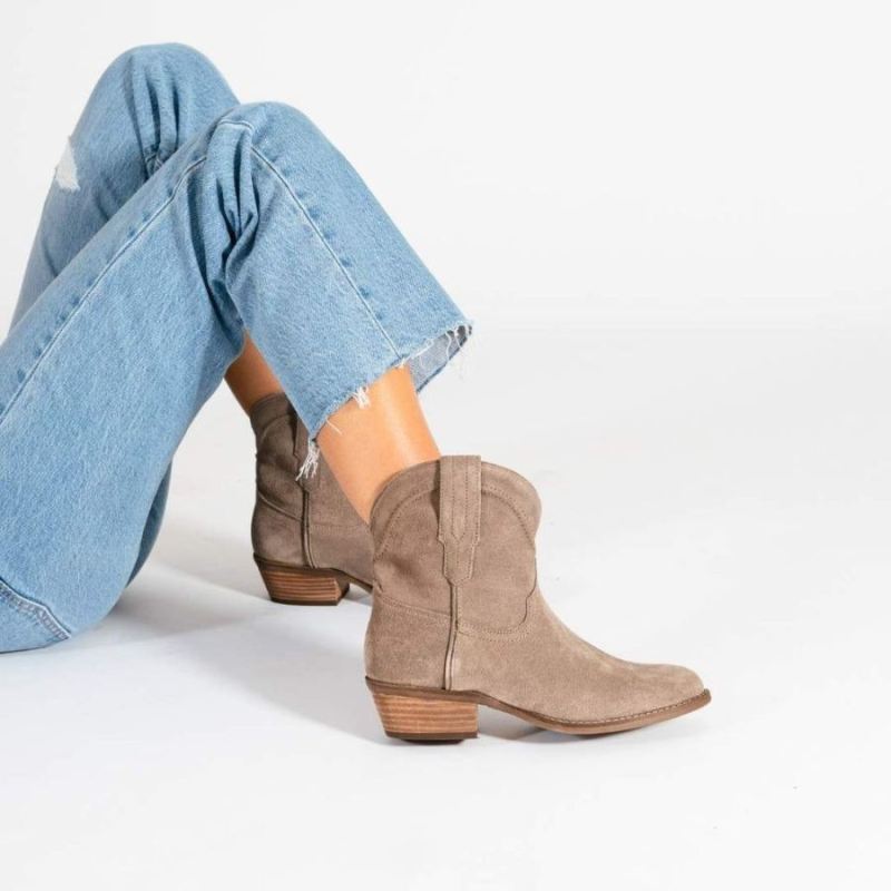 Available in a plethora of soft suede leather colors, the Dingo1969 Tumbleweed is a sure hit. Popular round toe and low heel. 7" height makes it perfect with dresses, shorts and jeans. The hinged cushion insole and lightweight rubber outsole mean all day comfort. #tumbleweedbootie #rollinacrosstheprairie #freespirit