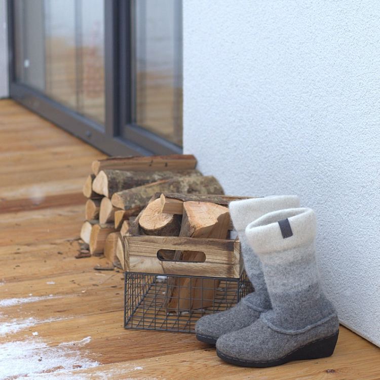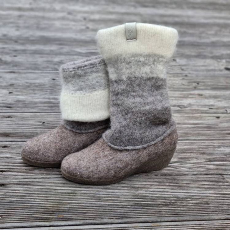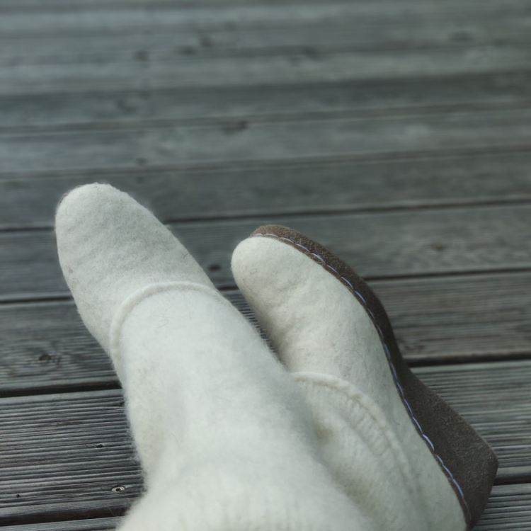 Boot-top is knitted and felted from 100% natural wool yarn. Rubber soles are not slippery and suitable for wearing in Winter conditions.