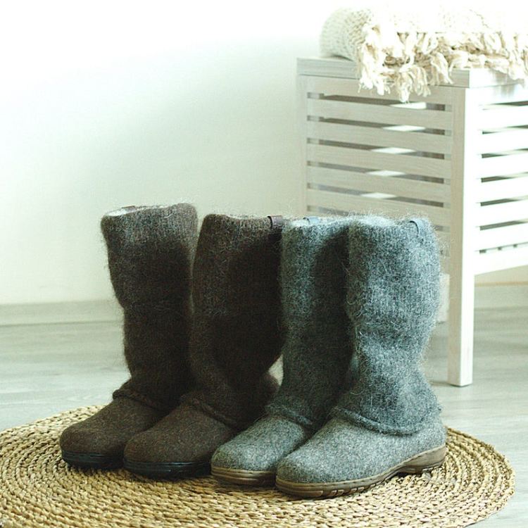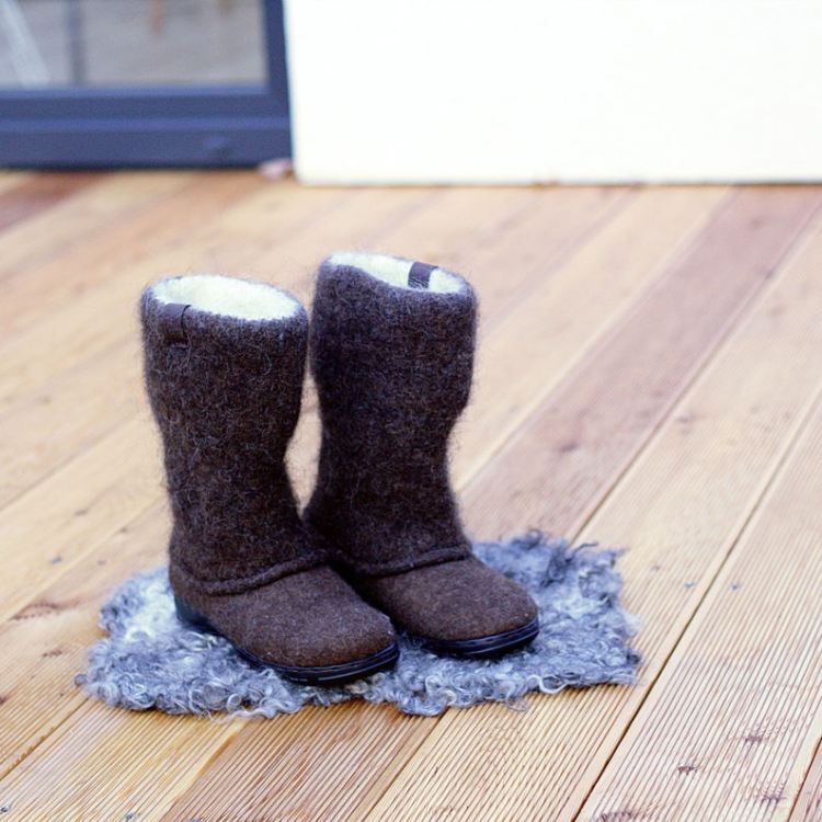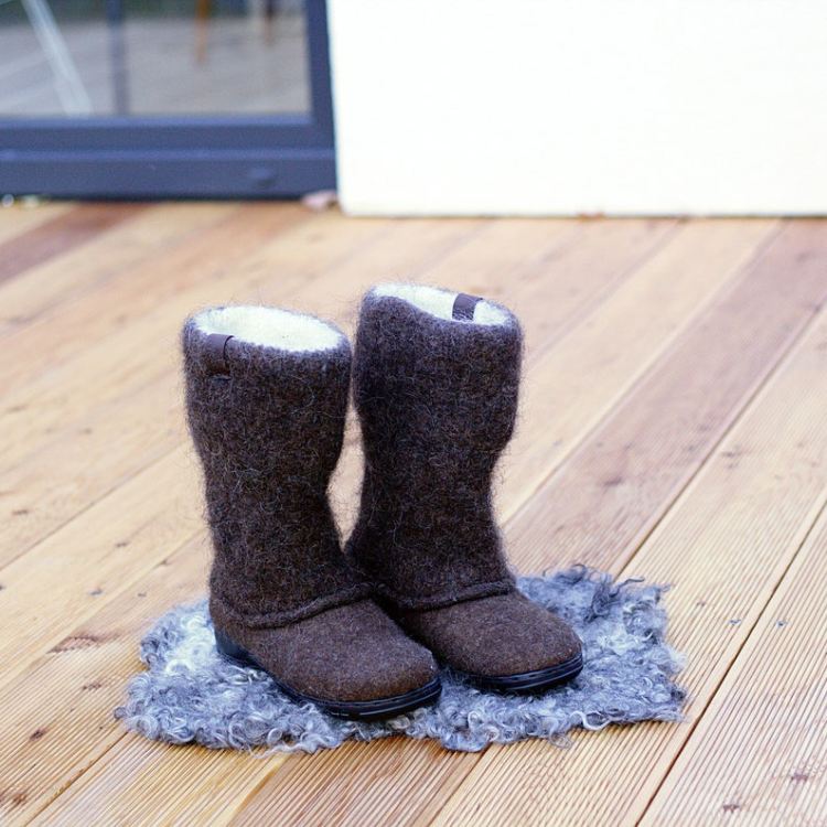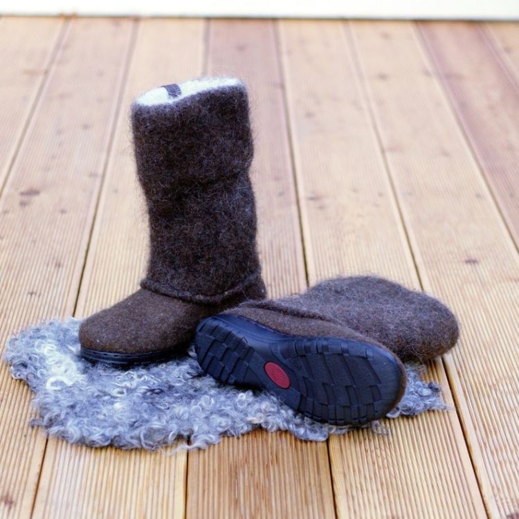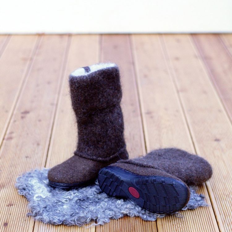 These boots are made from organic undyed not chemically treated wool. Boot-top is knitted and felted of 100% wool yarn. Boots are made using wet felt technology
