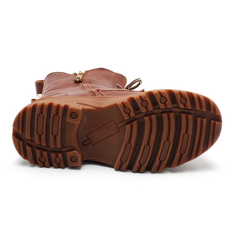 These combat boots feature eco-friendly leather with a double-sided print and rounded toe construction, with a lace-up closure for a snug fit. They have a soft textile lining with sturdy construction for maximum comfort and a high-quality rubber outsole for traction and exceptional durability.
