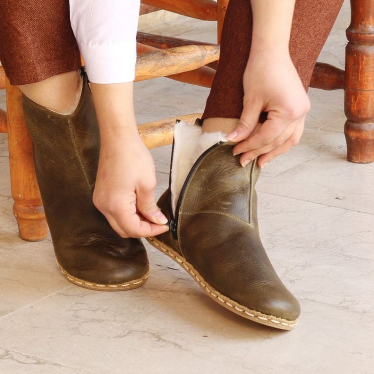 - Women's Leather Ankle Handmade Fashion Woolen Fur Brown | Save More