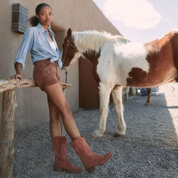 Classic cowgirl in our water-resistant suede, The Josie is a free spirit that brings the cowgirl energy to its timeless profile. It features a classic round toe with a 1 " heel. The Josie's 11" shaft features a unique threading pattern, and signature Tecovas toe stitching completes its elegant yet down-to-earth feel.
